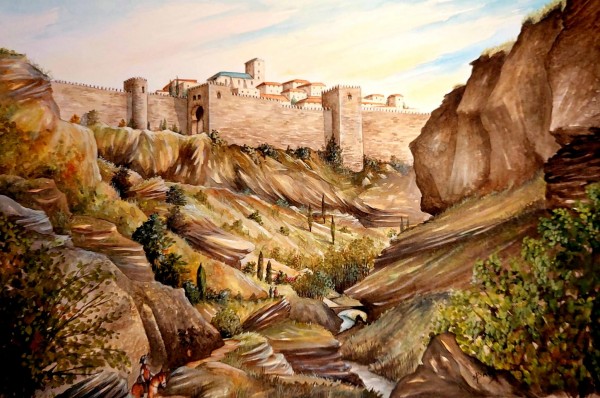 This painting depicts the impressive walls from the South. We also see an Aquaduct built to supply the city's early Mills.